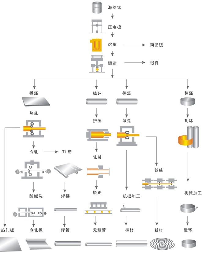 钛材生产工艺流程图:
